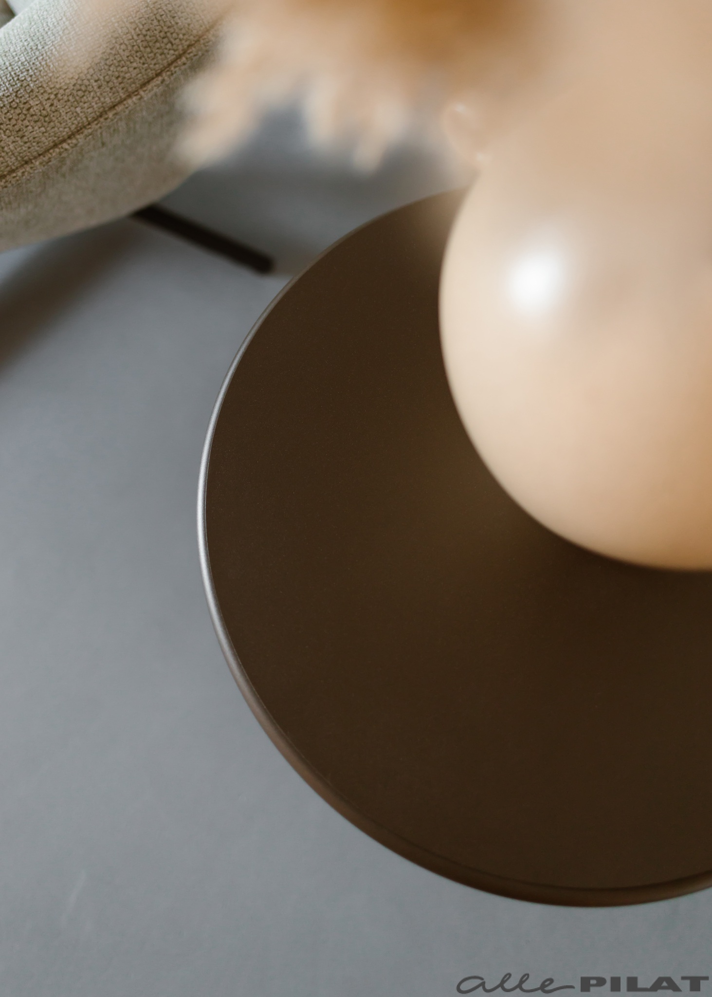 Bijzettafel Metro is een metalen tafeltje met een subtiele donkerbruine finish. Een slanke bijzettafel met een ruimtelijk en strak design. Ideaal voor naast de bank voor een kopje koffie of een goed glas wijn.
