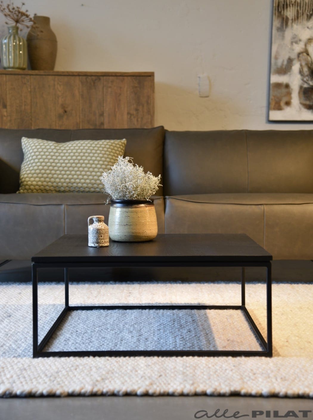 Salontafel Black is een vierkante zwarte salontafel. Het blad is van massief eikenhout en het zwarte frame is van metaal. Een mooie luchtige en strakke salontafel, maar tegelijk ook een tikkeltje design door de zwarte kleur.