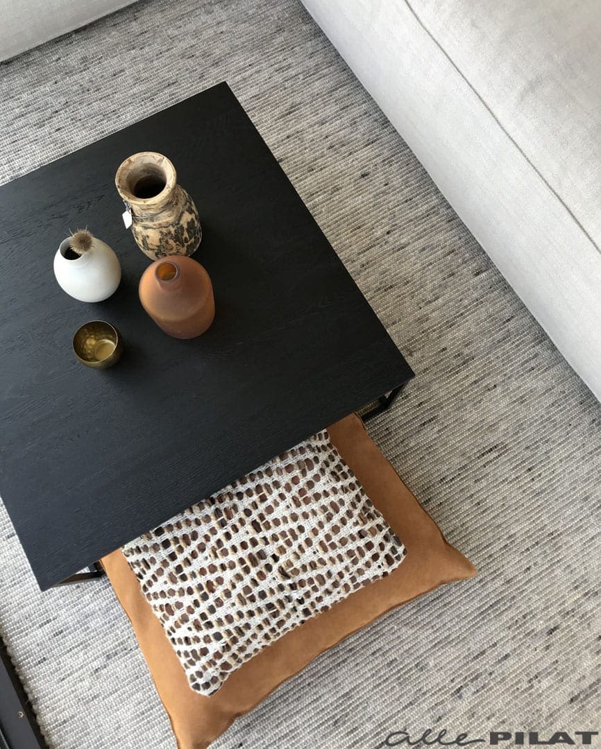 Getoonde zwarte salontafel is 70 x 70 x H30 cm en kost €429,-