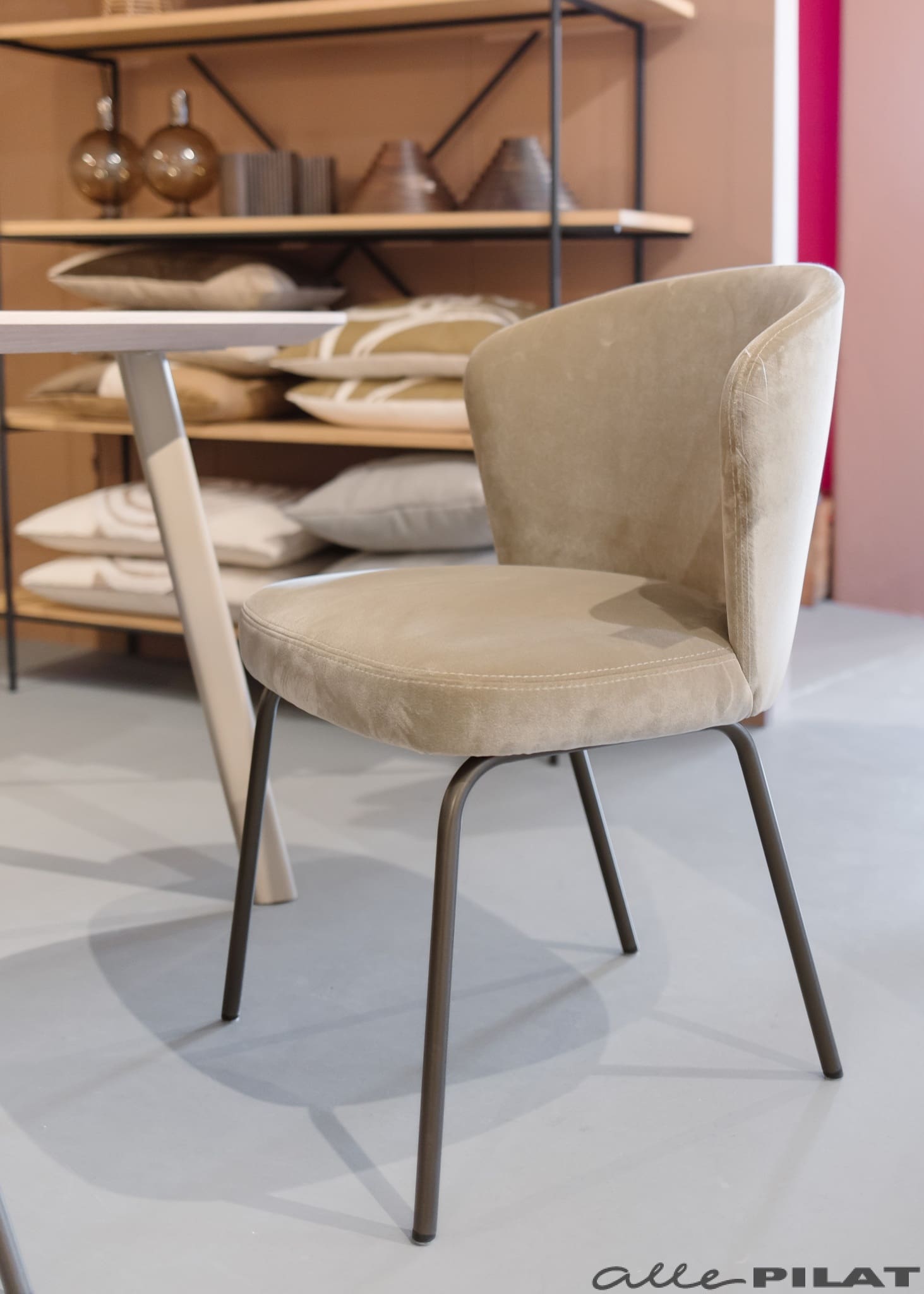 Eetkamerstoel May is een comfortabele stoel. Kenmerkend is de bruine poot. Eetkamerstoel May is er zowel met als zonder armleuning.